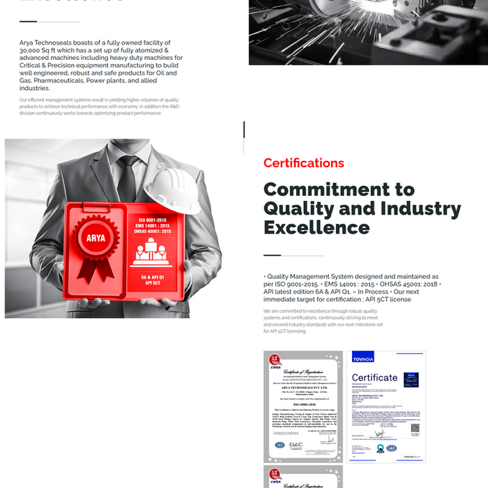 The new website now effectively showcases Arya Techno Seals as a trusted industry partner. The improved structure and messaging make it easier for visitors to explore their services, while the professional design enhances credibility. As a result, the brand is better positioned to engage with global clients and present itself as a leader in engineered solutions.
